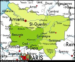 53. City on the Somme : AMIENS. Just north of Paris. Map.