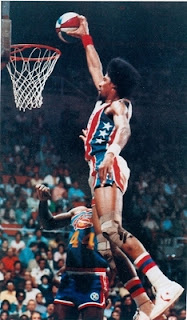 43. Old court org. : ABA - American Basketball Association that played with a red, white and blue ball until it merged with the NBA in 1976