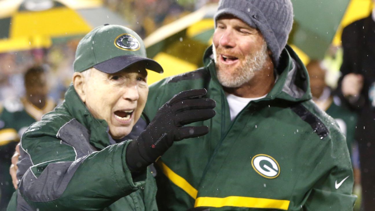 98. Winner of the first two Super Bowl MVPs : STARR (Bart). Here he is with Brett Favre in 2015.