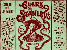 42. Snake oil, purportedly: CURE ALL. Also an old-timey product that was marketed as a panacea. When I was very little I wondered where they found the "cea" to put in the pan.