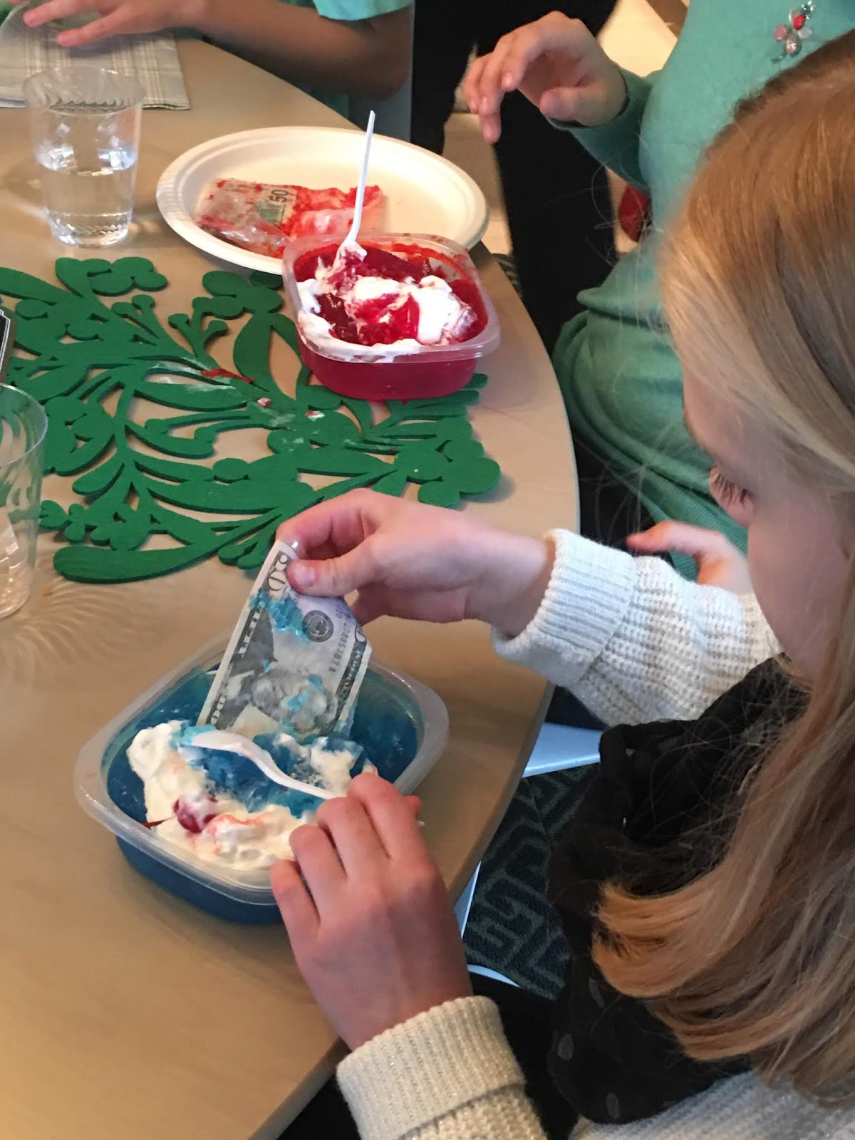 25. How work may be done near a deadline: MADLY - I waited until Dec. 23 to bury $100 (in baggies) in Jello for the kids Christmas presents and had to work MADLY to get done. It was great fun to see them eat their way to cash.
